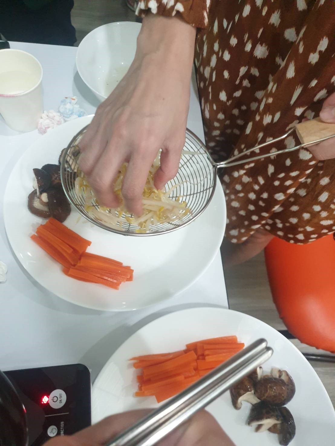 จากนั้นเริ่มกิจกรรมแรกด้วยการปรุงอาหาร ใช่ค่ะ! อิฉันจะต้องทำอาหาร แถมยังเป็นอาหารเกาหลีอีกต่างหาก