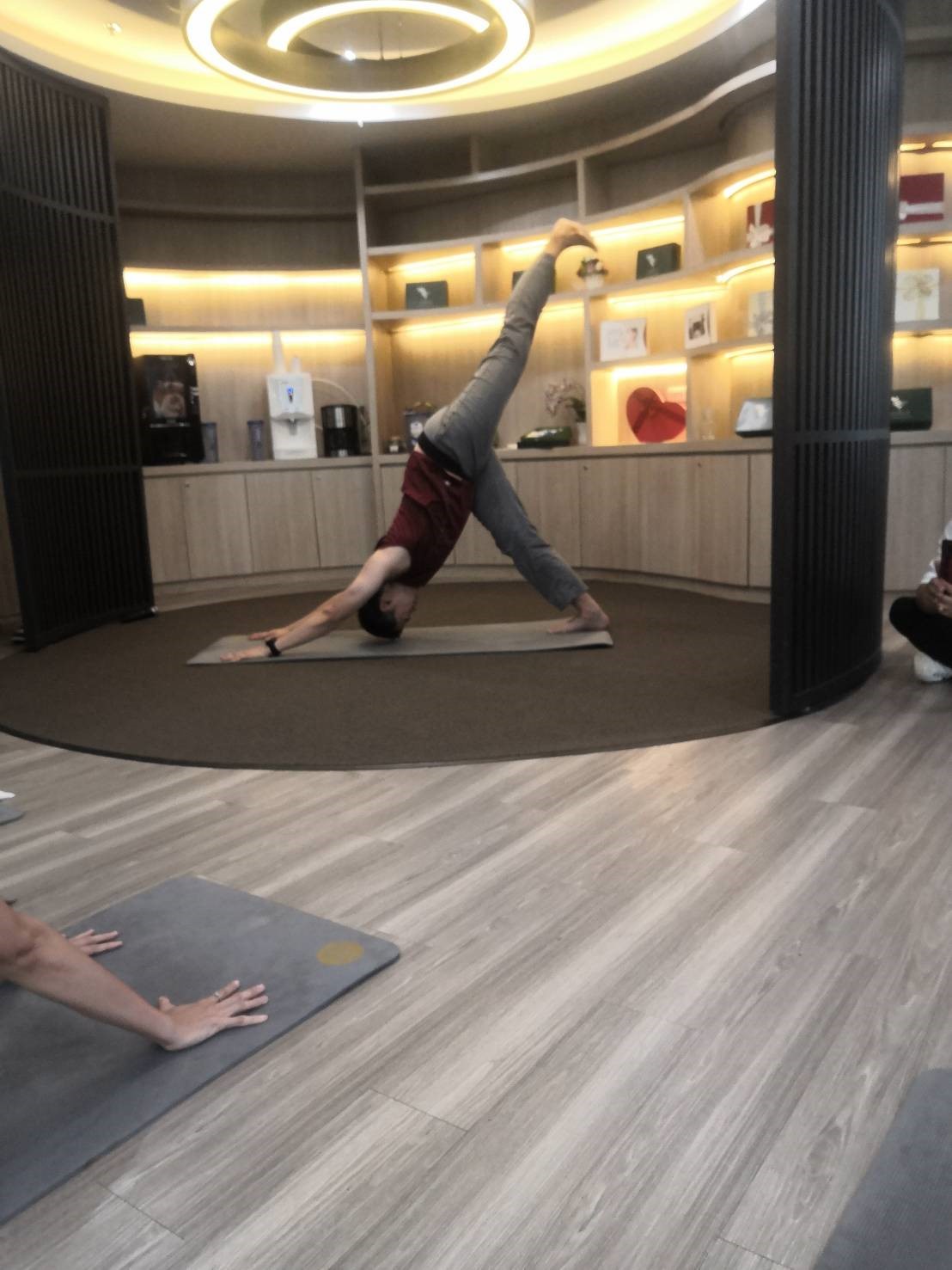 อีกหนึ่งกิจกรรมที่บอกเลยว่าพีคมาก คือ โยคะ แต่ละท่านั้นไม่ยาก