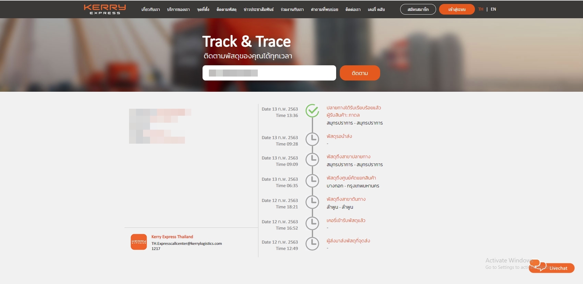 คือส่งของ Kerry จากลำพูน ไป กทม. เขตราชเทวี พอเช็คในระบบของไปลง สมุทรปราการ แล้วบอกมีคนรับ