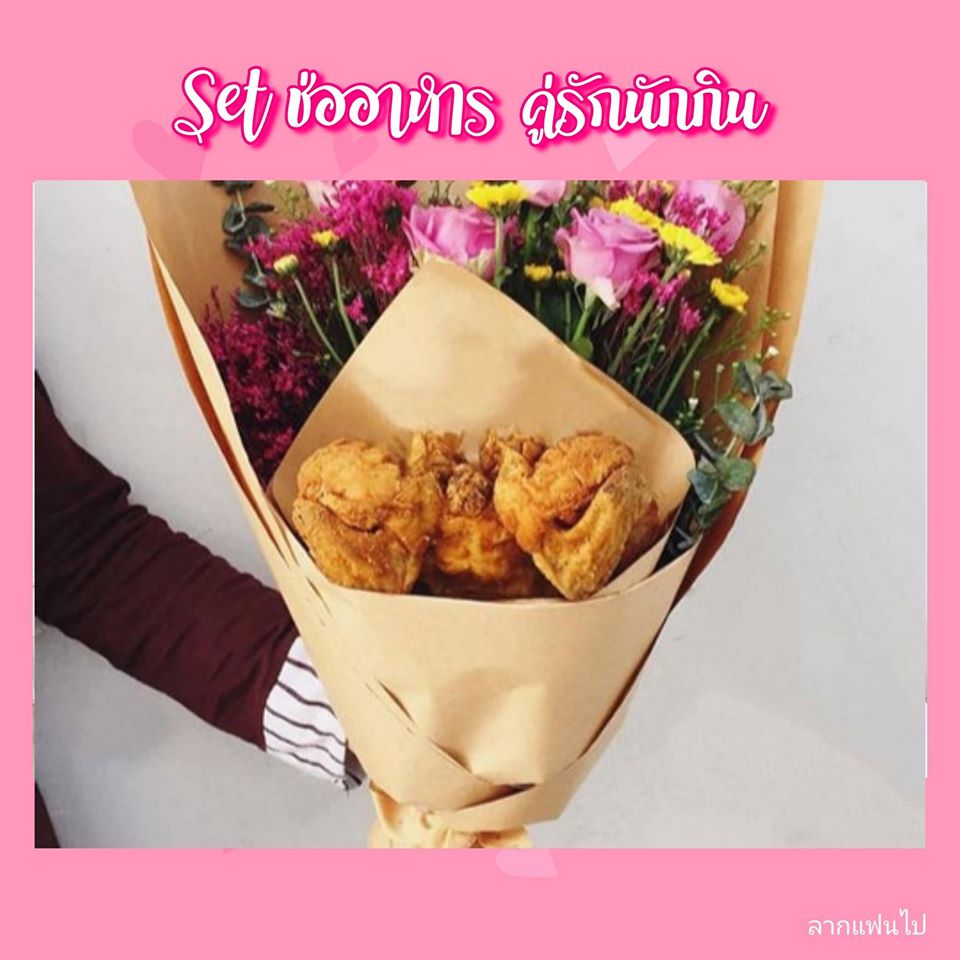 สายคู่รักนักกิน น่าจะถูกใจสิ่งนี้ 55 ดอกไม้ไม่อิ่ม ขออาหารละกัน ไม่ว่าจะเป็นไก่ทอด ลูกชิ้น มาสเมลโล่ ขนมต่างๆนานาๆ แล้วแต่จะสร้างสรรค์ เอามาจัดเป็นช่อดอกไม้ส่งให้คนที่เรารัก รับรองยิ้มแก้มปริ 55