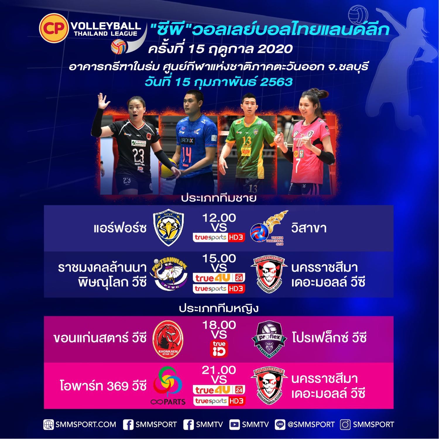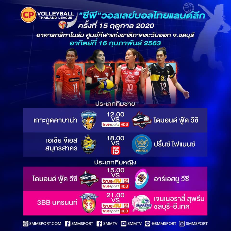 โปรแกรม และ รายงานผล วอลเล่ย์บอล ไทยลีก ประจำวันที่ 15 กุมภาพันธ์ 2563