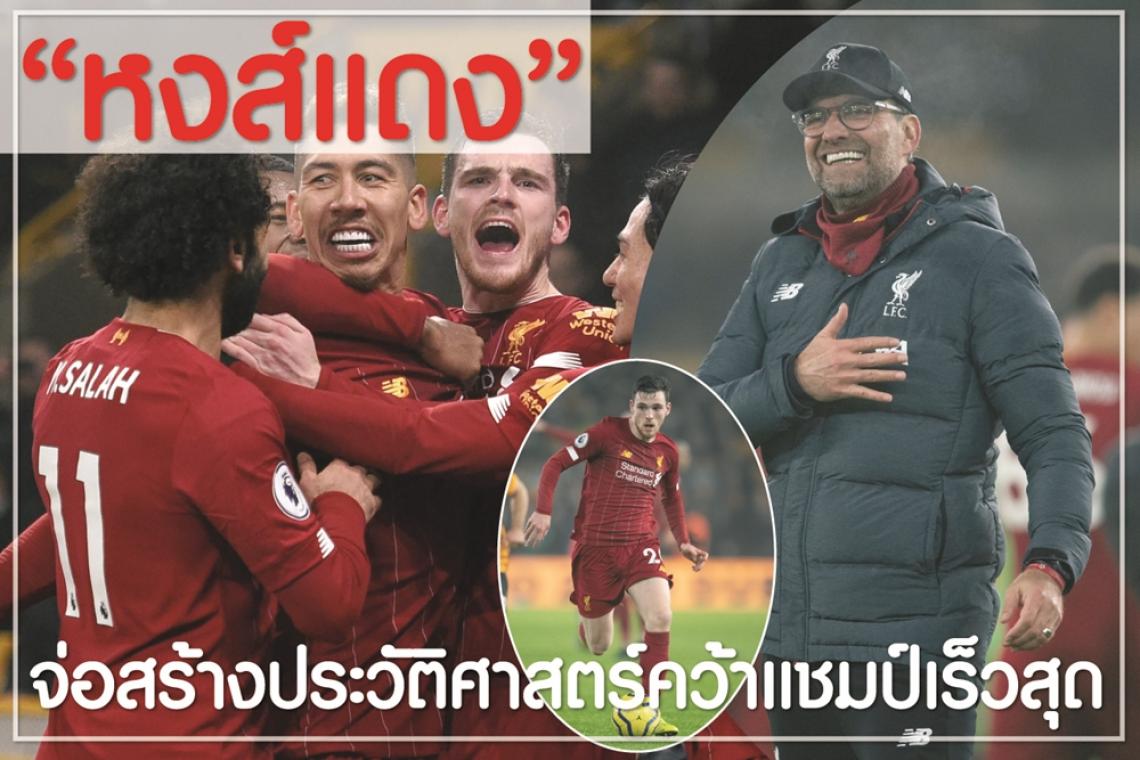 และแน่นอว่า การลุ้นแชมป์ในฤดูกาลนี้คงจบลงด้วยการคว้าแชมป์ของ "หงส์แดง"ก็คงไม่ผิด แต่ความท้าทายที่เหลือของฤดูกาลคือ “หงส์แดง” จะคว้าแชมป์แบบไร้พ่ายได้หรือไม่ และจะคว้าแชมป์ได้เร็วแค่ไหนเท่านั้นเอง......