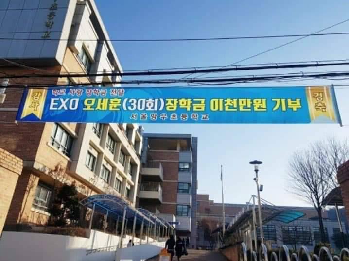 โรงเรียนประถมศึกษาโซลมังกูทำป้ายขอบคุณเซฮุนที่มอบทุนการศึกษาให้เด็กๆ จำนวน 20 ล้านวอน