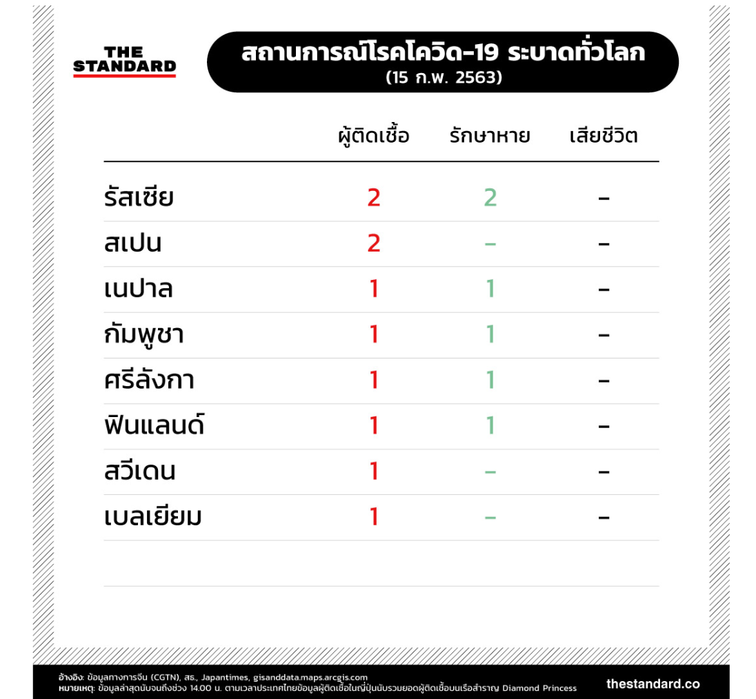 สถานการณ์การเฝ้าระวังผู้ติดโรคโควิด-19 (ไวรัสโคโรนาสายพันธ์ุใหม่) ยังคงเป็นสิ่งที่หลายหน่วยงานเฝ้าติดตาม และออกประกาศมาตรการป้องกันในทุกช่องทางอย่างเข้มงวด THE STANDARD รวบรวมจำนวนตัวเลขผู้ติดเชื้อที่พบในไทยล่าสุดมาให้ดูว่าสถานการณ์ ณ ปัจจุบันเป็นอย่างไร