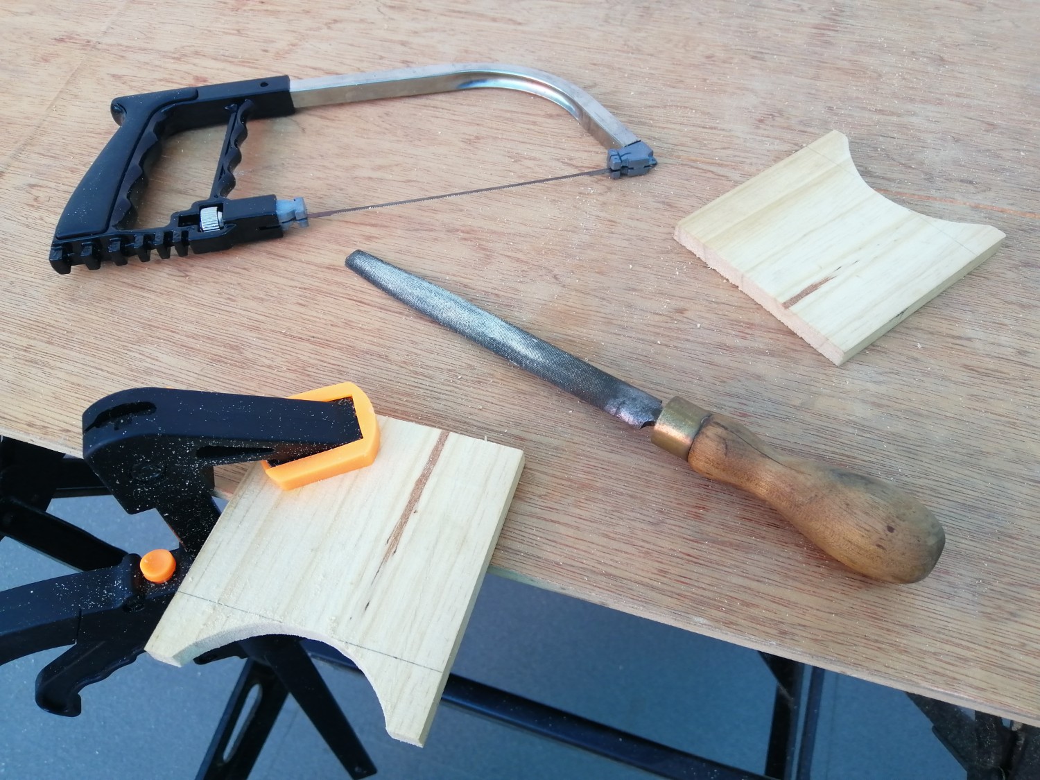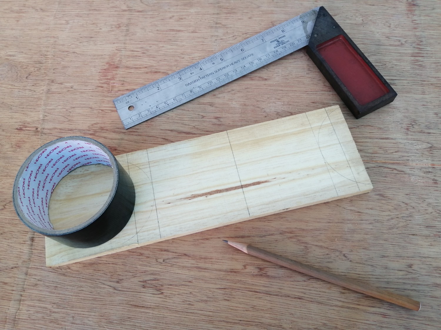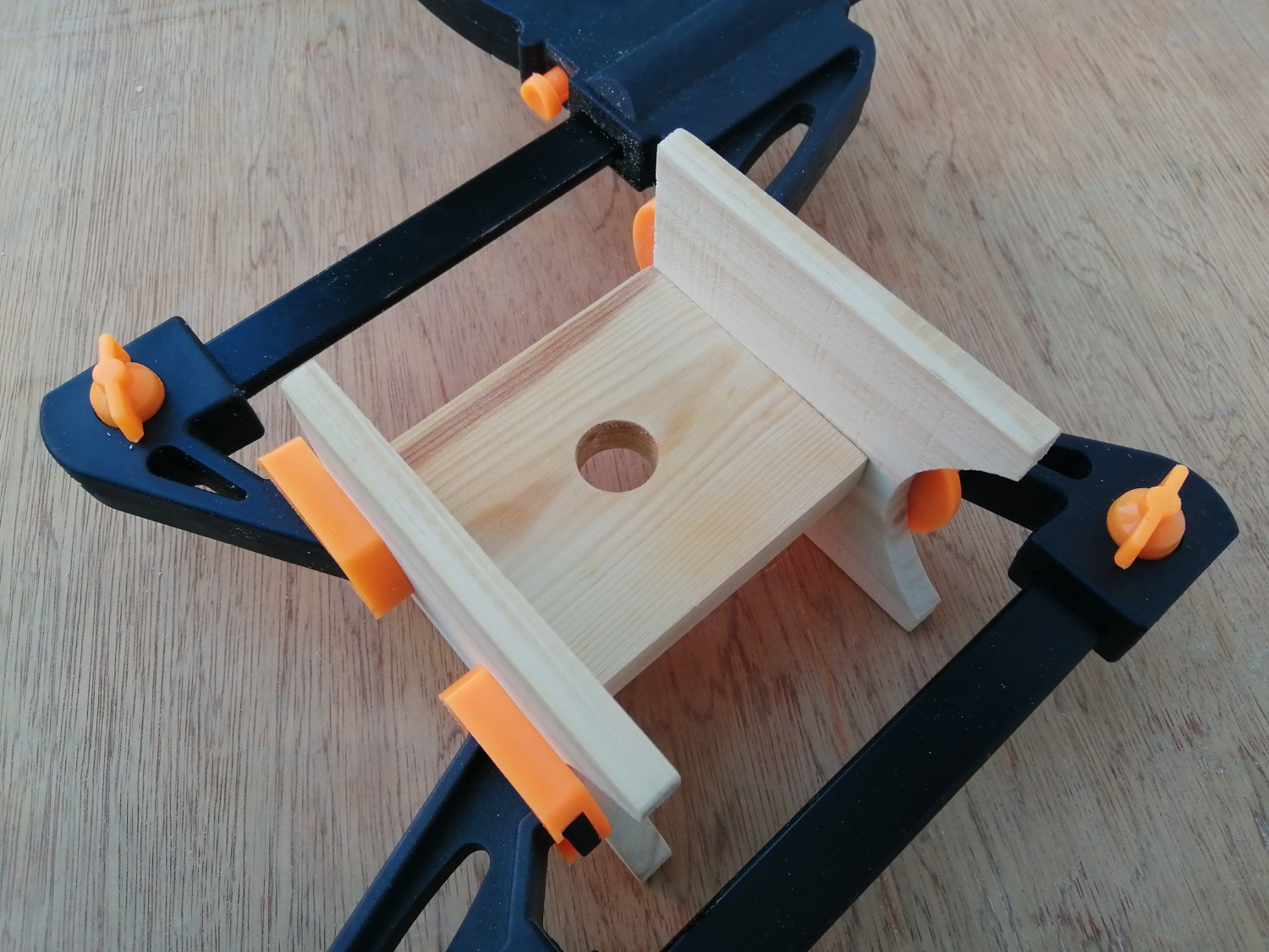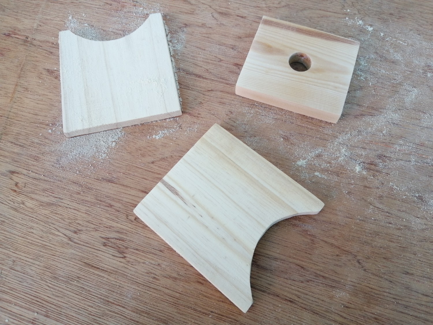 ไม้ที่มีรูตรงกลางนี่เหลือมาจากงานอื่น เจาะรูมาเรียบร้อย