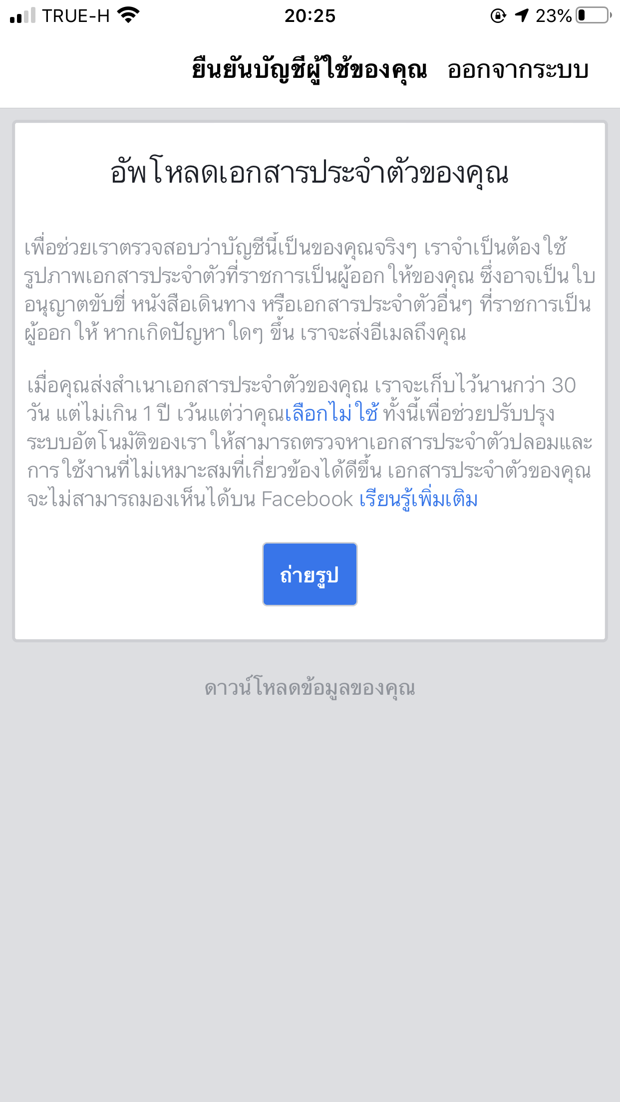 ทาง facebook เลยให้อัพโหลดเอกสารเข้าไปเหมือนดังรูปค่ะ