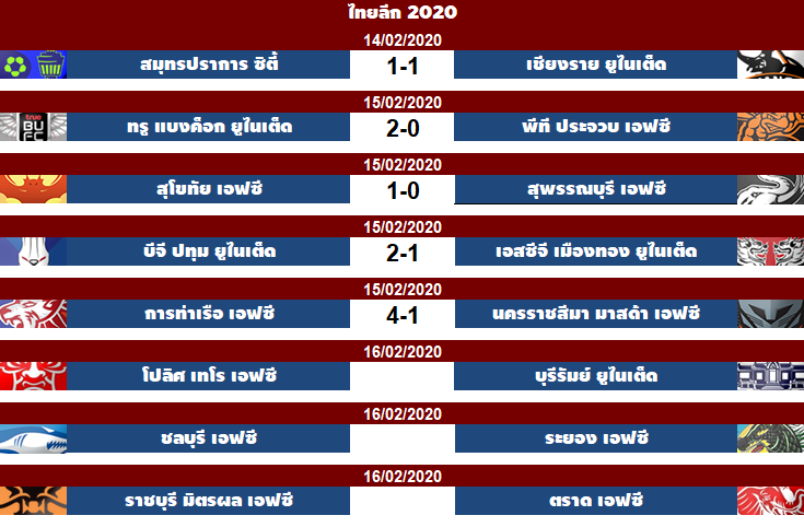 ผลการแข่งขันและตารางคะแนน T1-T4 วันที่ 15 ก.พ. 2563