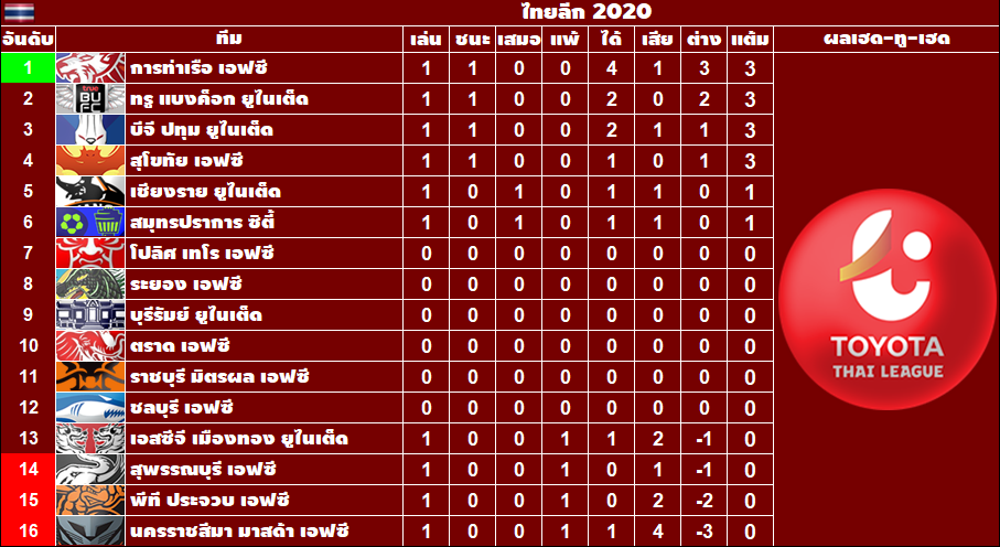 สรุปผลฟุตบอล ไทยลีก (T2,T4) 2018 ประจำวันเสาร์ที่ 1 กันยายน 2561 พร้อมตารางคะแนน