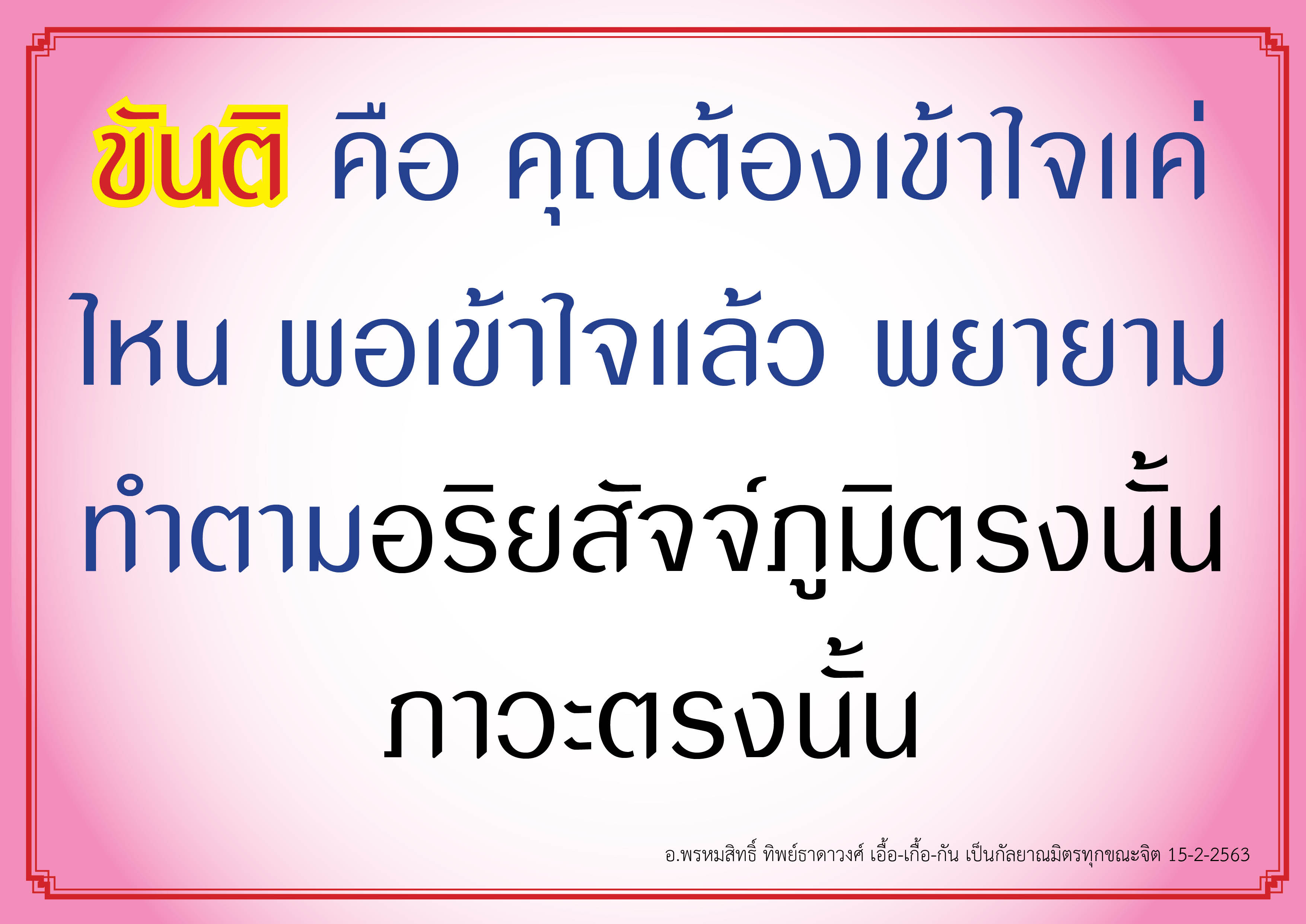 ขันติ คือ คุณต้องเข้าใจแค่ไหน พอเข้าใจแล้ว พยายามทำตามอริยสัจจ์ภูมิตรงนั้น ภาวะตรงนั้น