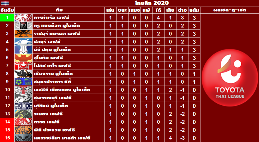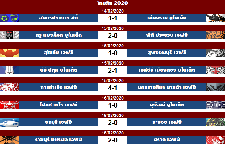 ผลการแข่งขันและตารางคะแนน T1-T4 วันที่ 16 ก.พ. 2563