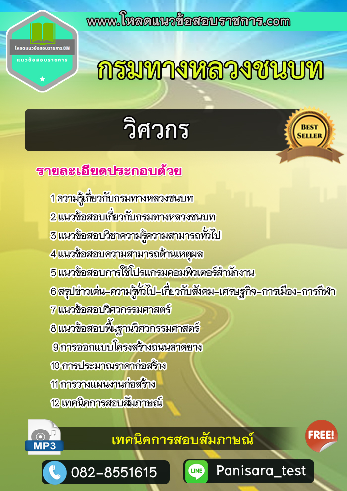 (ติดต่อสอบถามสั่งซื้อ) แนวข้อสอบ วิศวกร กรมทางหลวงชนบท.ได้ที่