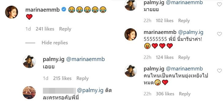 Marina แล้ว ปาล์มมี่ ก็ได้ขอบคุณคอมเมนต์ของ 2 นักแสดงอย่าง