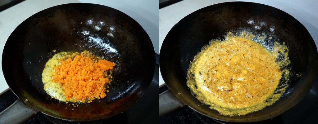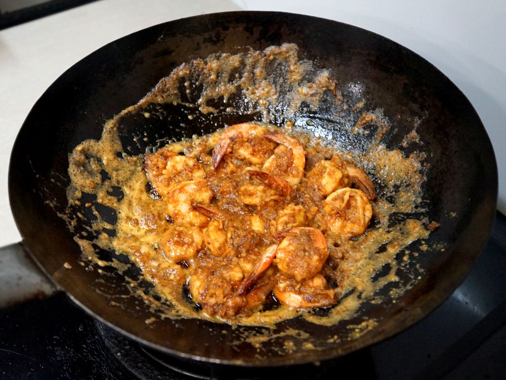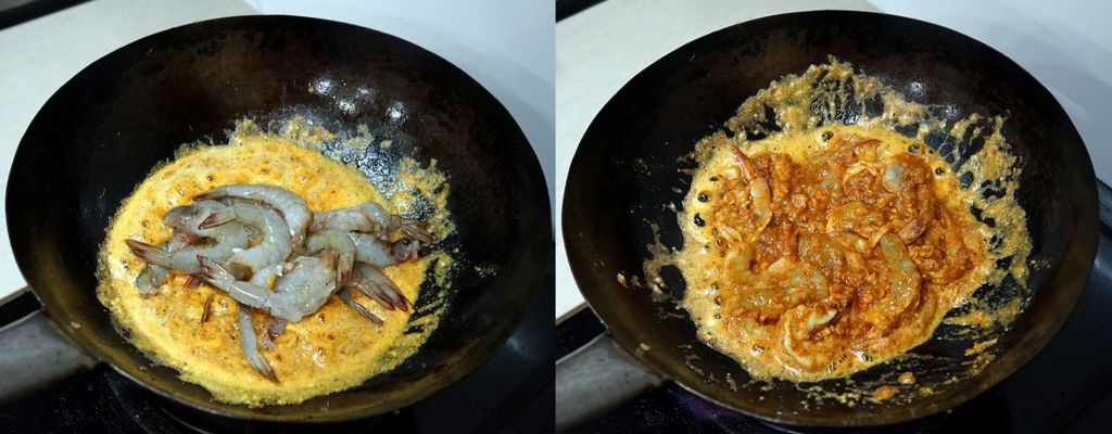 นำมาผัดกับไข่แดงเค็มผสมด้วยพริกแกงนิดหน่อย เพื่อให้มีรสจัดจ้านขึ้นนิดๆ