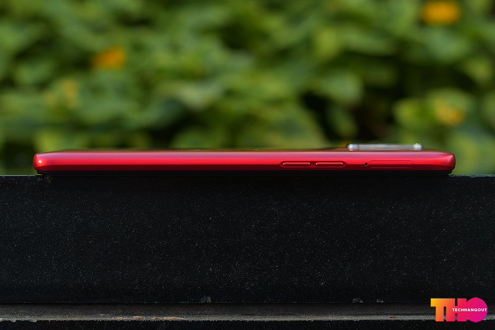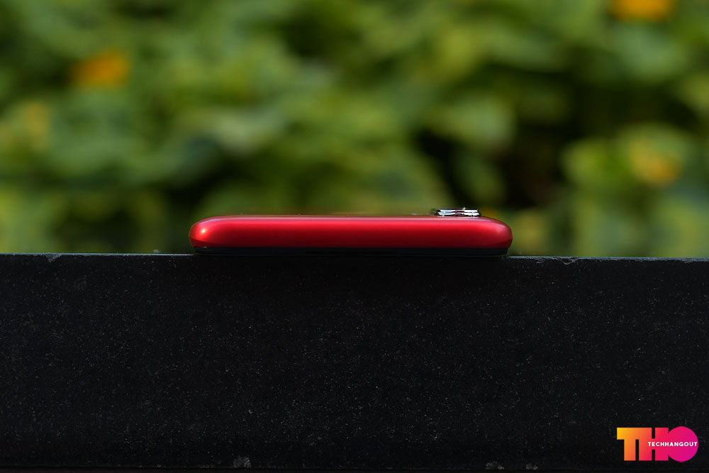 ในส่วนของด้านบนนั้นไม่มีรูไมค์ตัดเสียงมาให้ครับเป็นสีแดงสดแบบเดียวกับข้างหลังแต่ไม่มีลวดลาย ส่วนวัสดุขอบเครื่องทั้งหมดจะเป็นพลาสติกด้านครับผม แต่ฝาหลังนั้นจะยังโค้งมารับมือเหมือนกับรุ่น Pro อยู่เหมือนเดิมนิดๆครับ