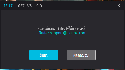 เข้า Nox แล้วมันขึ้นว่า พื้นที่เพียงพอ โปรดใช้พื้นที่ที่เหลือ ตามภาพทำยังไงถึงจะเข้า Nox ได้ครับ