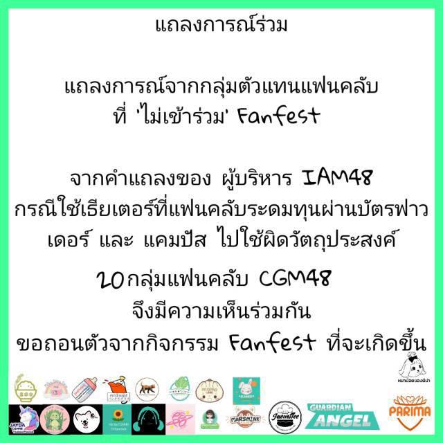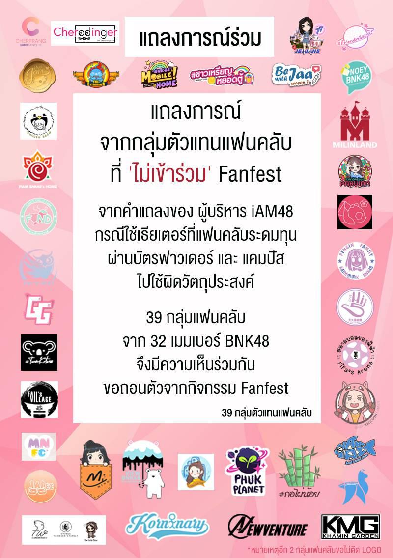 === 59 กลุ่มแฟนคลับสมาชิก BNK48 และ CGM48 ประกาศถอนตัวจากงาน Fan Fest ===