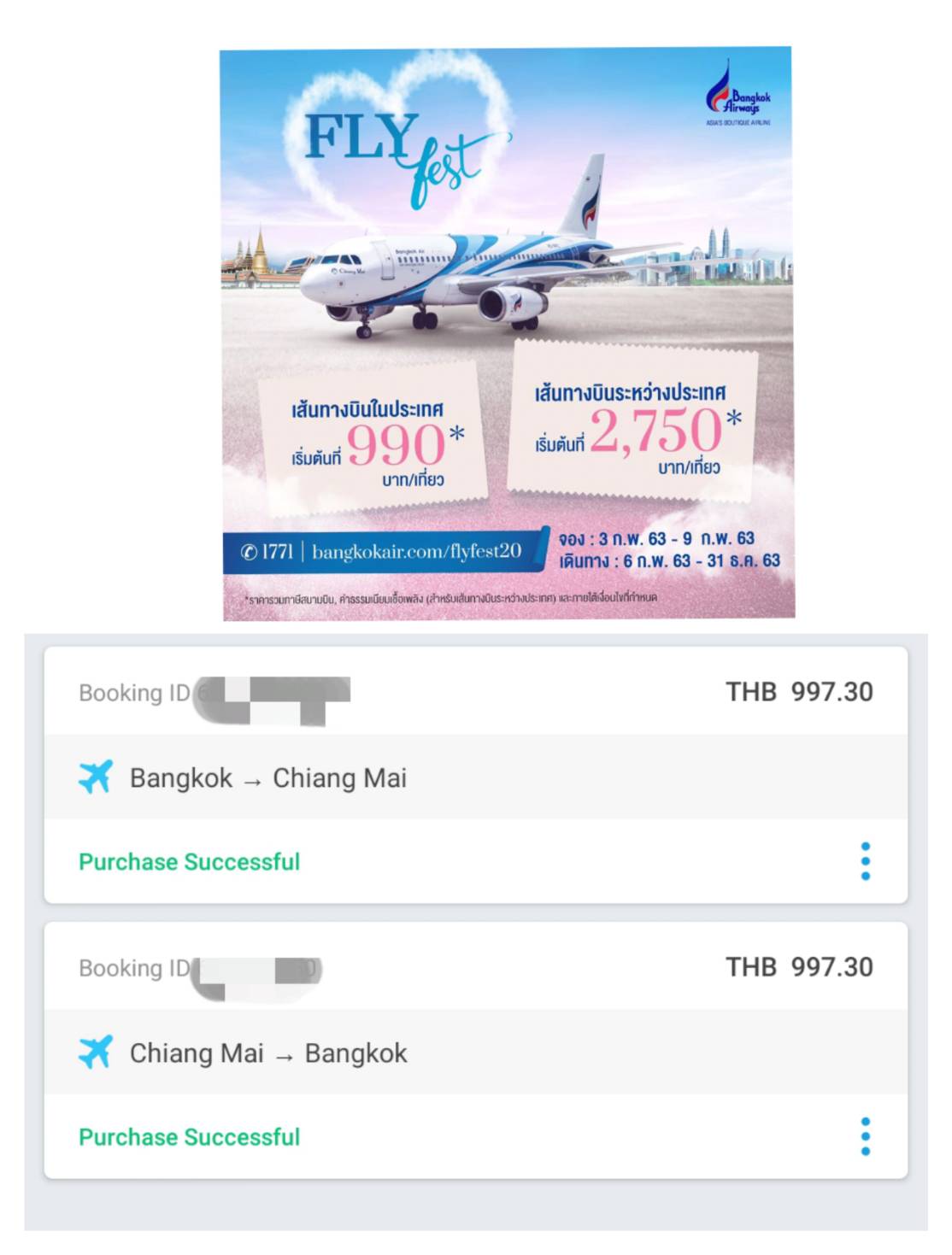 1.ค่าเดินทางไปกลับกรุงเทพ-เชียงใหม่ 1995 บาท ขอขอบคุณบางกอกแอร์เวย์ที่มีโปรดีๆแบบนี้มา