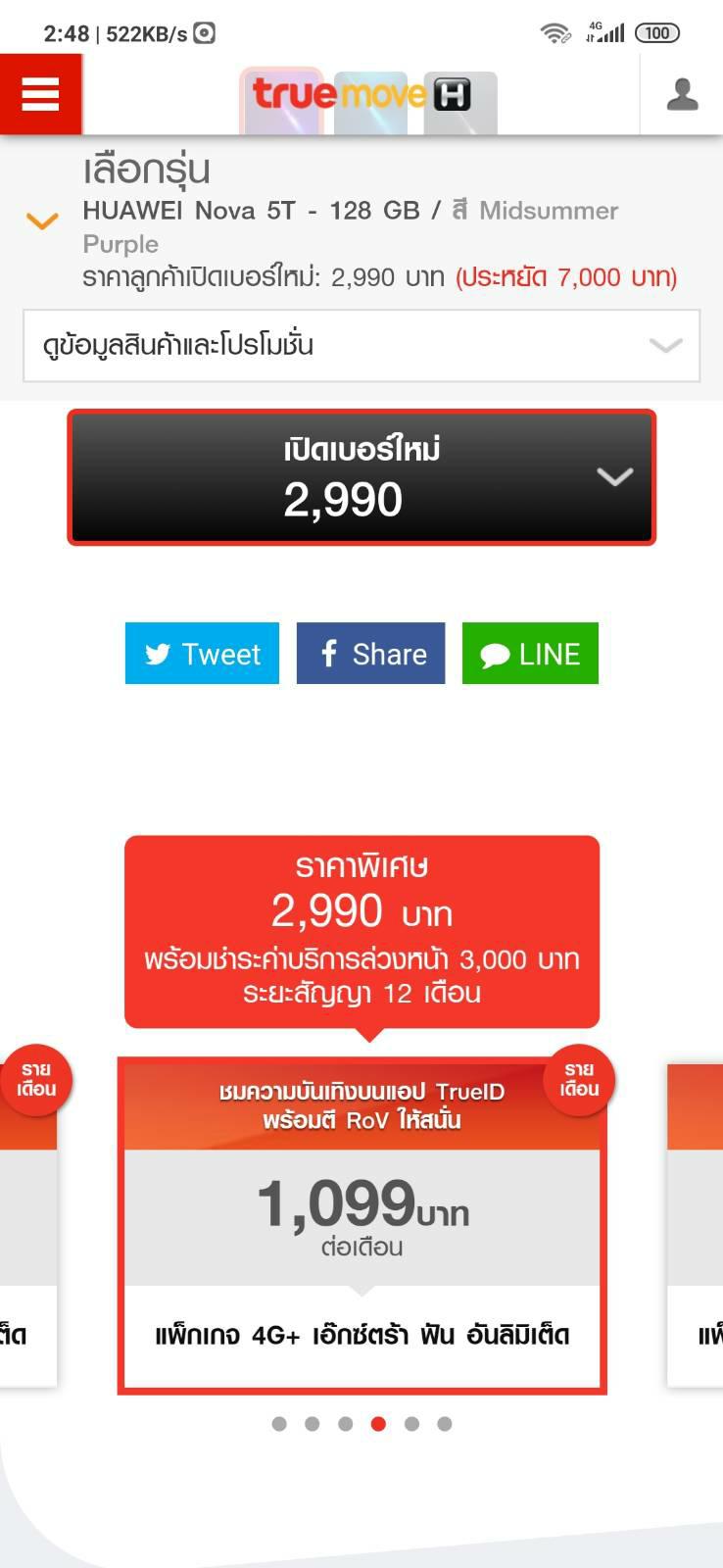 ผมจะซื้อ Huawei nova 5t ในราคา2,999บาท พร้อมโปรรายเดือน 1,099บาท