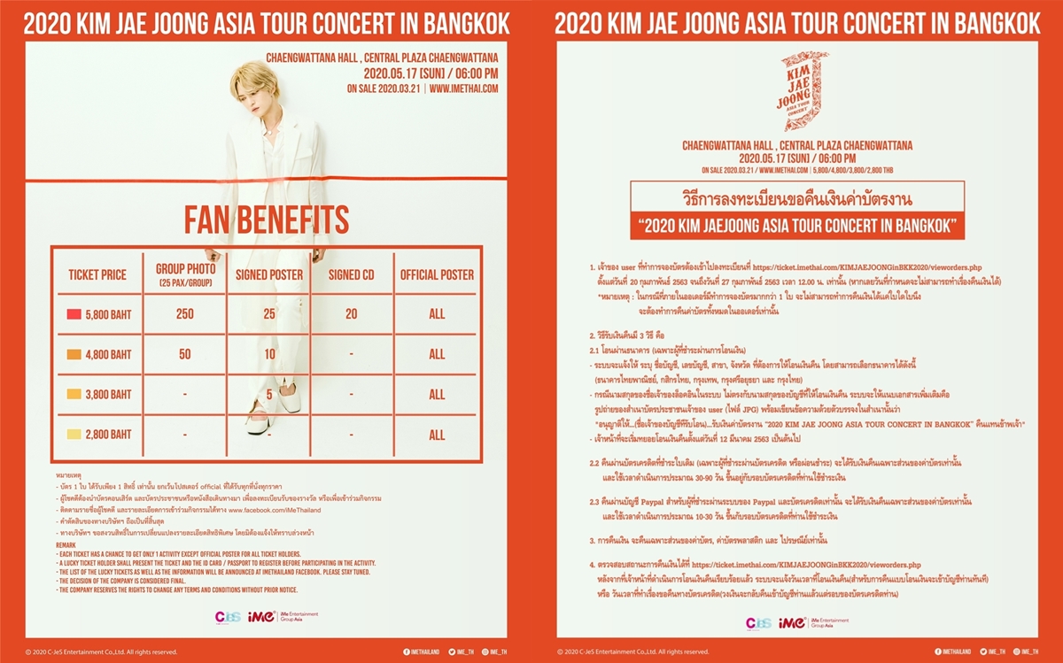 2020 KIM JAE JOONG ASIA TOUR CONCERT IN BANGKOK เนื่องจากเหตุการณ์การแพร่ระบาดของเชื้อ COVID-19 เพื่อความปลอดภัย และสุขภาพของแฟนคลับ รวมถึงศิลปินด้วยนั้น ตอนนี้แจแฟนชาวไทย เคลียคิวใหม่แล้วเตรียมตัวให้พร้อมมาสนุกไปด้วยกันกับ