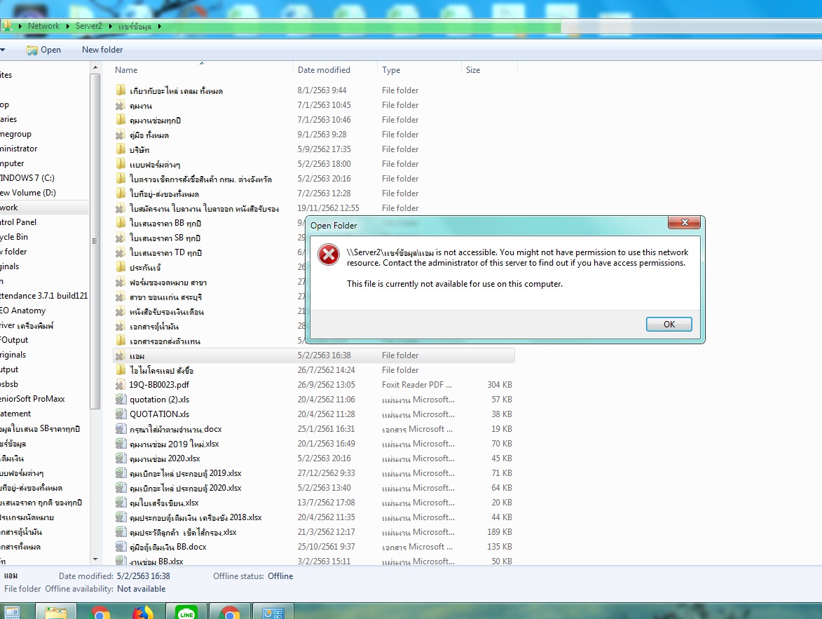 คอมพิวเตอร์ไม่สามารถเปิดงานที่แชร์ Folder ได้ค่ะ