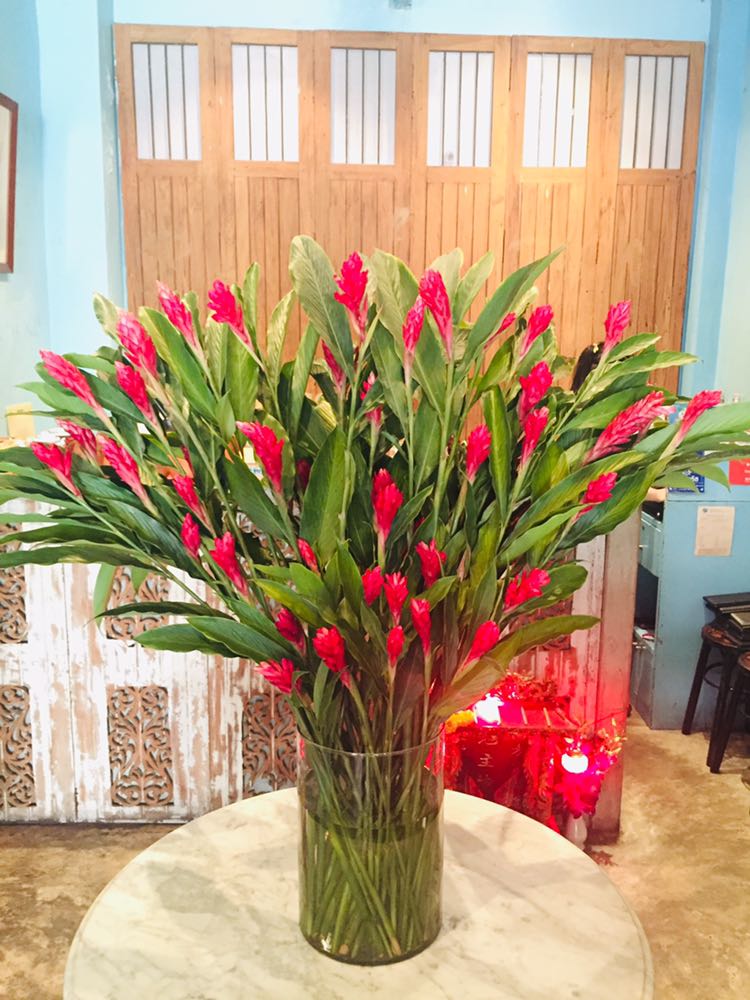 ได้โจทย์มาคือ แล้วแต่แม่ค้าดอกไม้จะจัดหามาให้ ด้นเอง คิดเอง เอาง่ายคือครีเอทเองทั้งหมด ปัญหาคือได้แจกัน ทรงปากกว้างและยาวมาเป็นแจกัน ดอกไม้จะมีก้ามปู ดอกไม้ข่าแดง ดอกได้ที่มีก้านยาว คล้ายต้นข่า ส่วนดอก จะแดงบ้าง ส้มบ้าง 🌈 ดอกไม้ที่ได้มา ก็คิดเอาตอนนี้ มาวางไว้ตรงหน้าแล้ว ส่วนตัวไม่เป็นงานแบบนี้ แต่ทำแล้วเพลินดี ช่วยเรื่องการฝึกสมาธิ