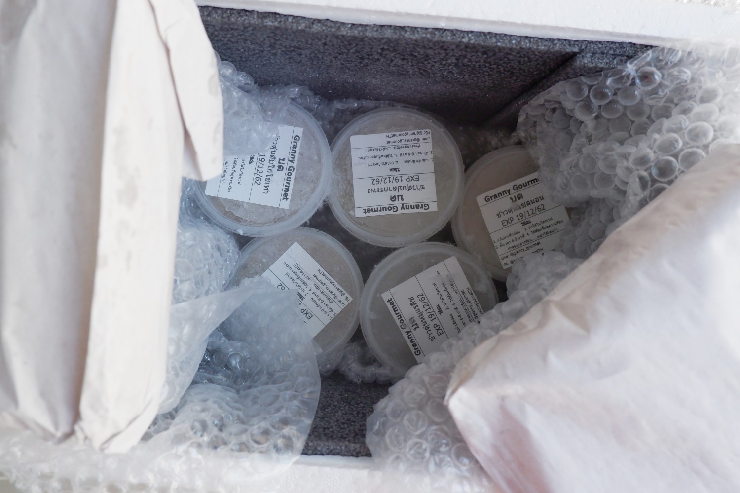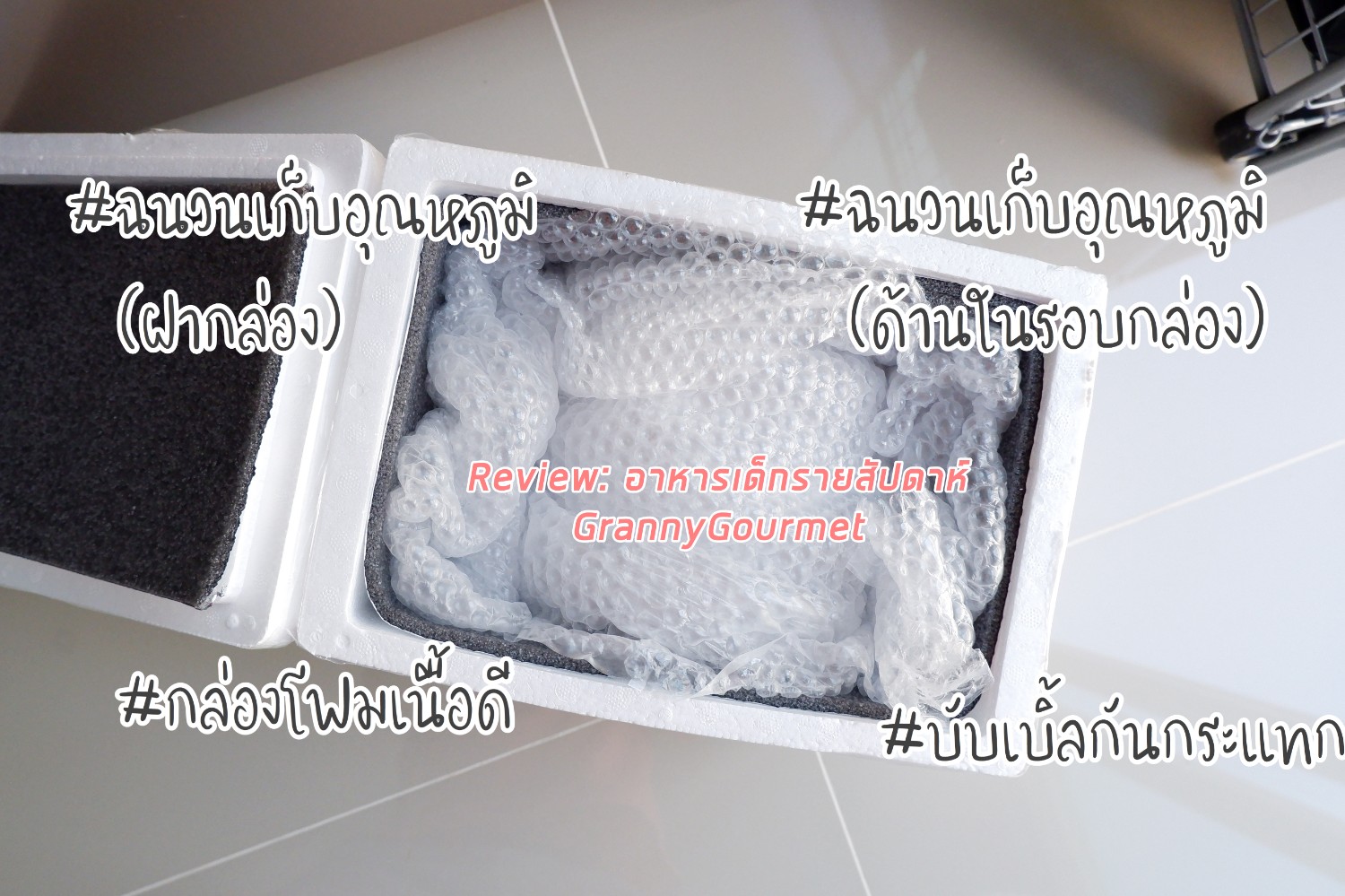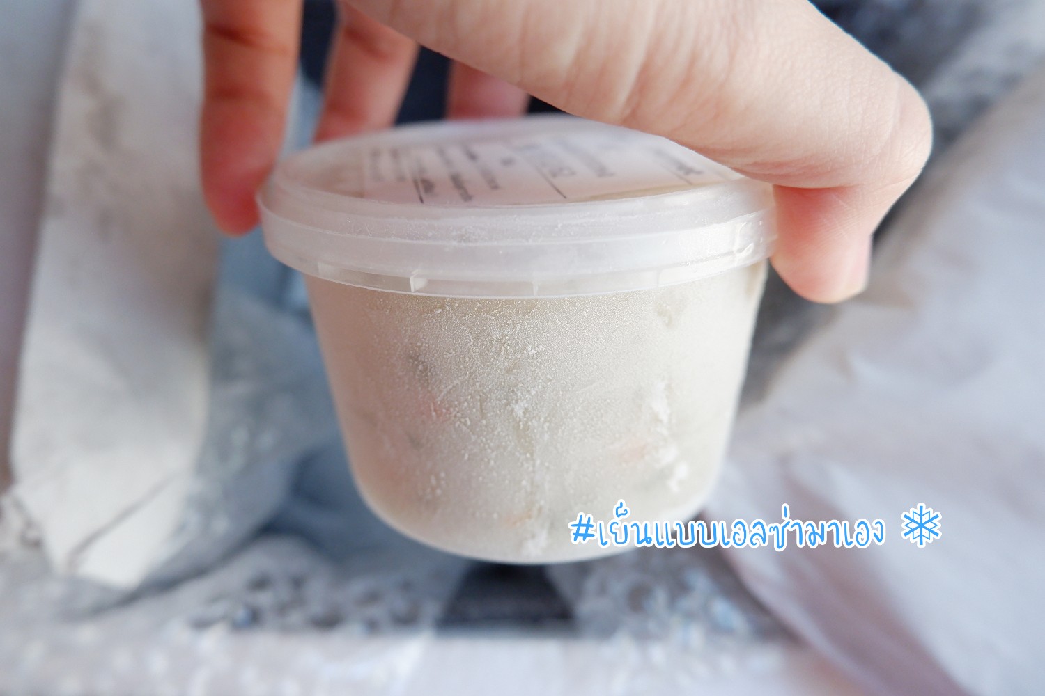 ที่ตกใจมาก เป็นเพราะแพ็คดีเกินคาดจริงๆ แพ็คกล่องโฟมชั้นนอก ตามด้วยฟอยล์หนาเก็บอุณหภูมิ และบับเบิ้ลกันกระแทก .. และยังจ้า ยัง ยังไม่พออออ .. มีน้ำแข็งแห้งตบท้ายมาให้ค่ะ ไม่เย็นเหมือนช่องฟรีซเคลื่อนที่ก็ให้มันรู้ไป๊!! ยืนยันแบบนั่งยันนอนยันเลยว่าแพ็คดีเกินราคาค่าส่งมากกกก