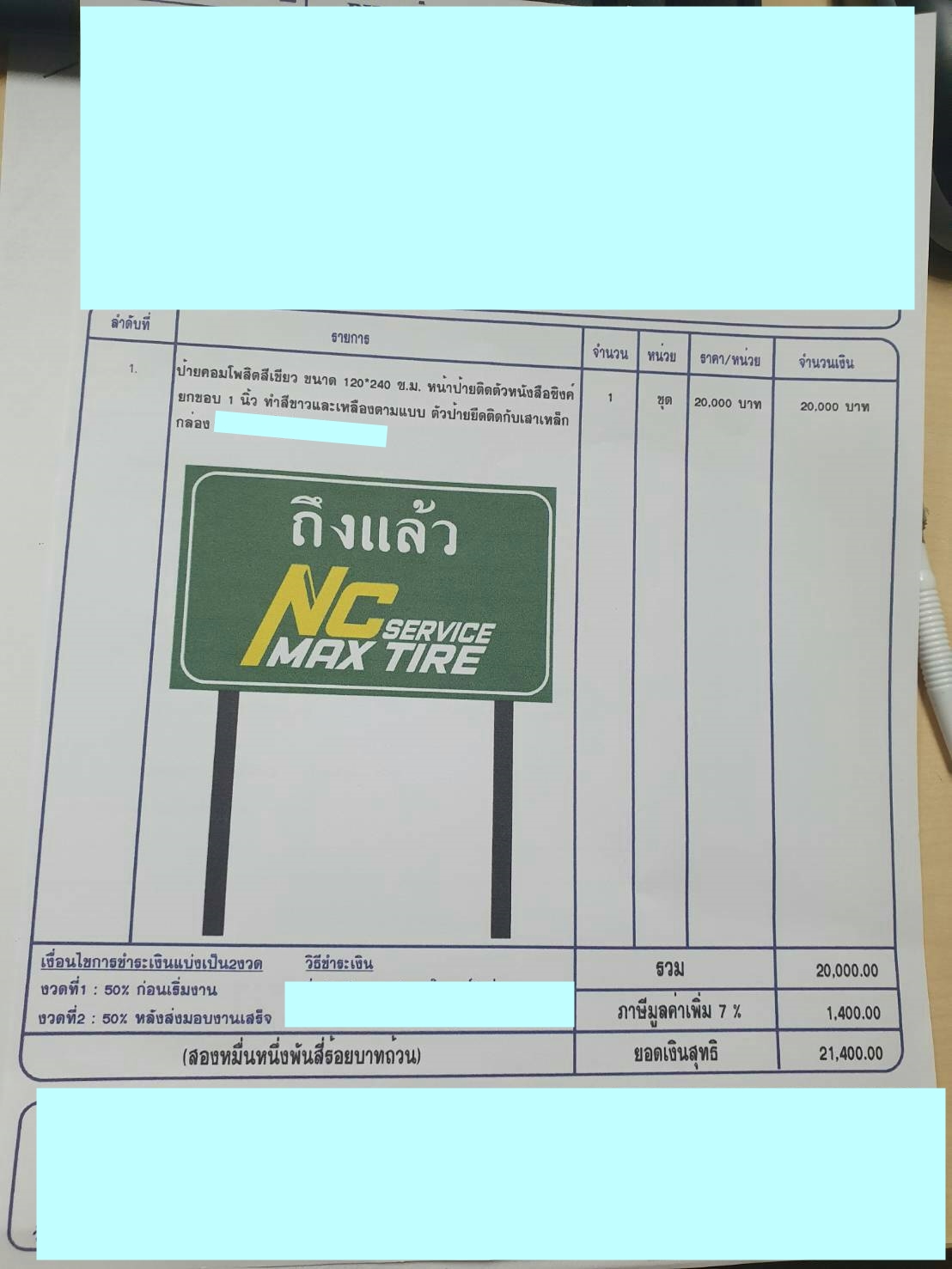 อยากถามว่าจ้างทำป้ายมันราคาประมาณนี้ไหมครับ แล้วเรื่องภาษีคิดแบบนี้ถูกแล้วใช่ไหม