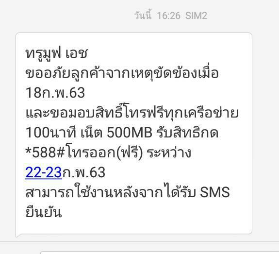 ระหว่างวัน 22-23 ก.พ. 63 สามารถใช้งานหลังได้รับ sms ยืนยัน