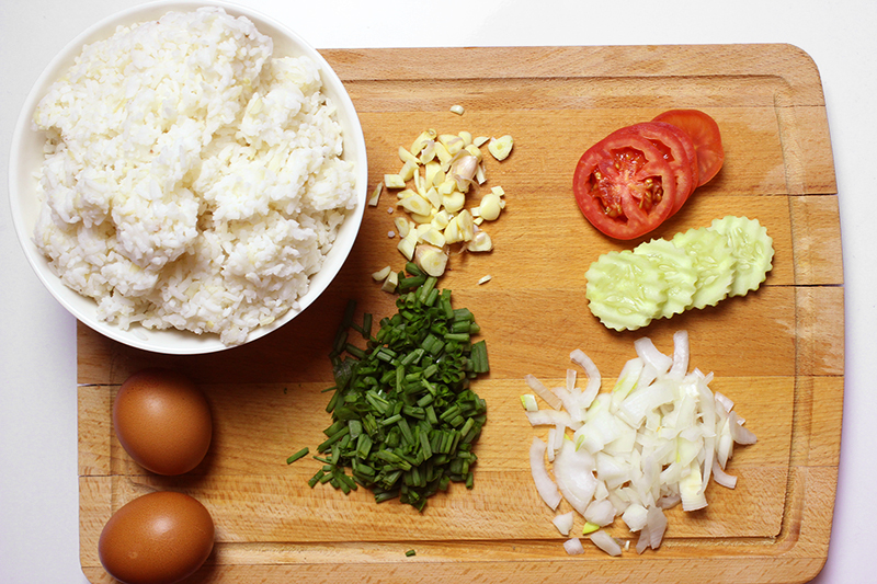 • ข้าวสวยหุงสุก (แนะนำใช้ข้าวเก่าหุงแล้วแช่เย็นไว้ 1 คืน)