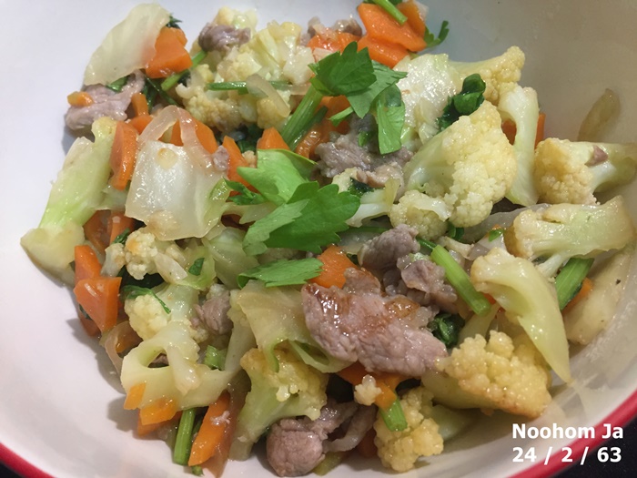 เช้านี้มีเมนูบ้านๆมาแนะนำที่เตรียมและทำเสร็จแล้ว หมูบดอบ ผัดมะเขือม่วง ผัดกะหล่ำดอก ตัมน้ำเต้า ที่บ้านผจญทำอะไรเล่าสู่กันฟังบ้างนะ