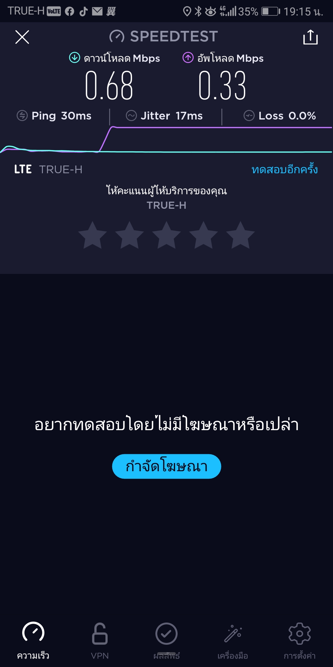 เน็ตทรูกากมาก จะสมัครความเร็วเน็ตเยอะไปเพื่ออะไรในเมื่อขึ้น h+ 4g+ ทั้งที่สัญญาณก็เต็ม ห่วยแตก