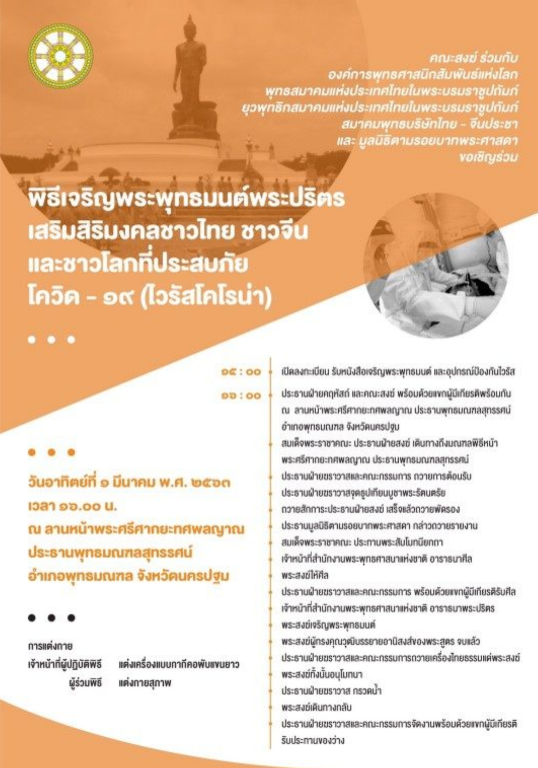 พิธีเจริญพระพุทธมนต์พระปริตรเสริมสิริมงคลชาวไทยชาวจีนและชาวโลกที่ประสบภัยจาก covid -19