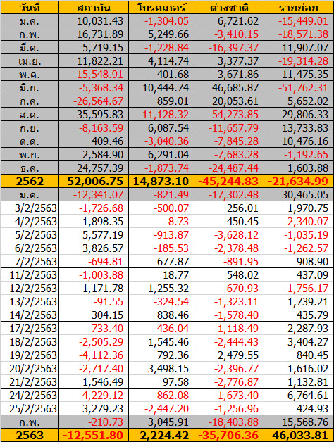 Sinthorn Summary 25/2/2563 : ต่างชาติขายสุทธิ -1,256.96 ลบ.