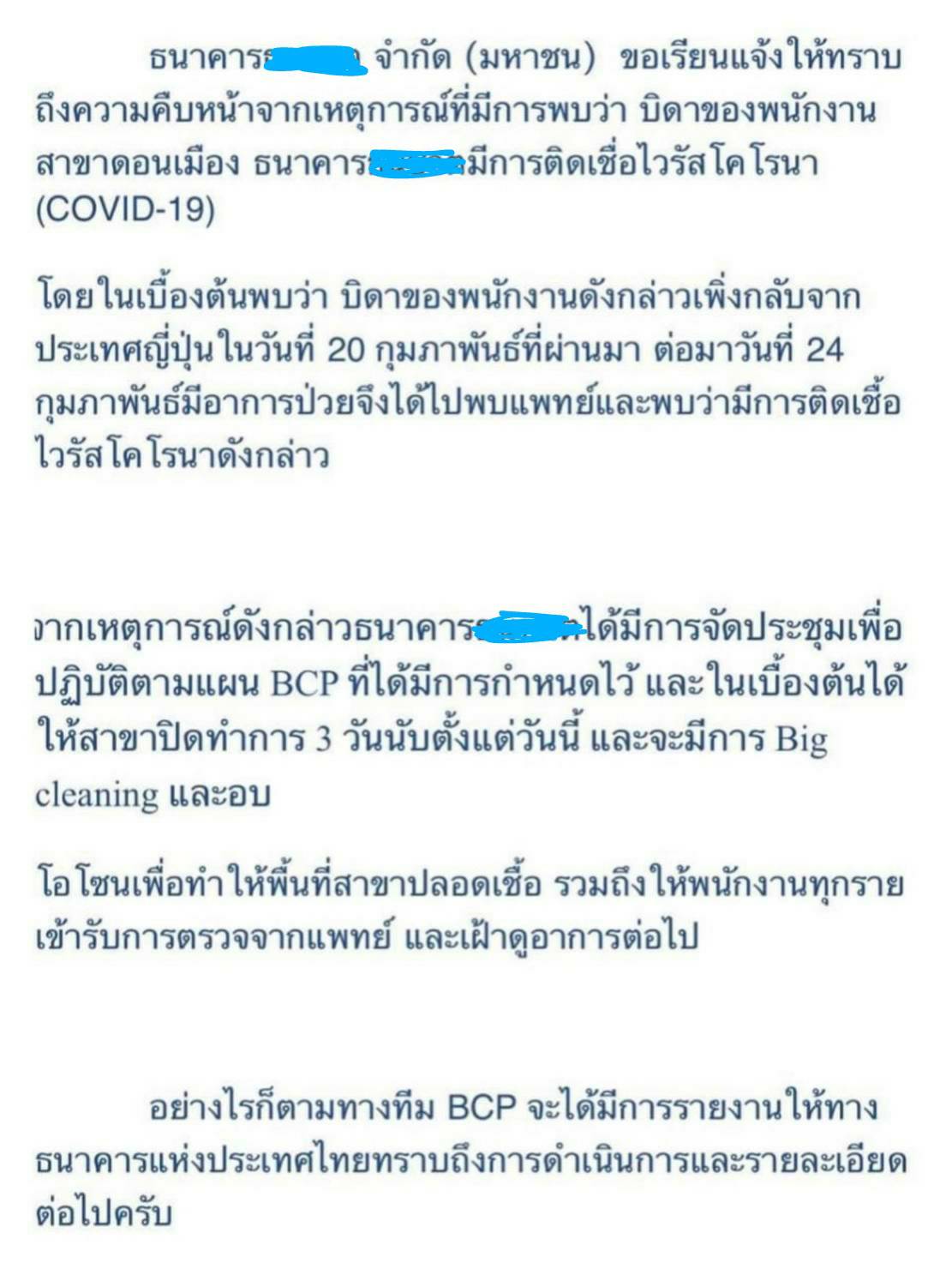 ถามหน่อย ข่าวบิดา พนักงานธนาคารติด COVID จริง หรือปลอม?