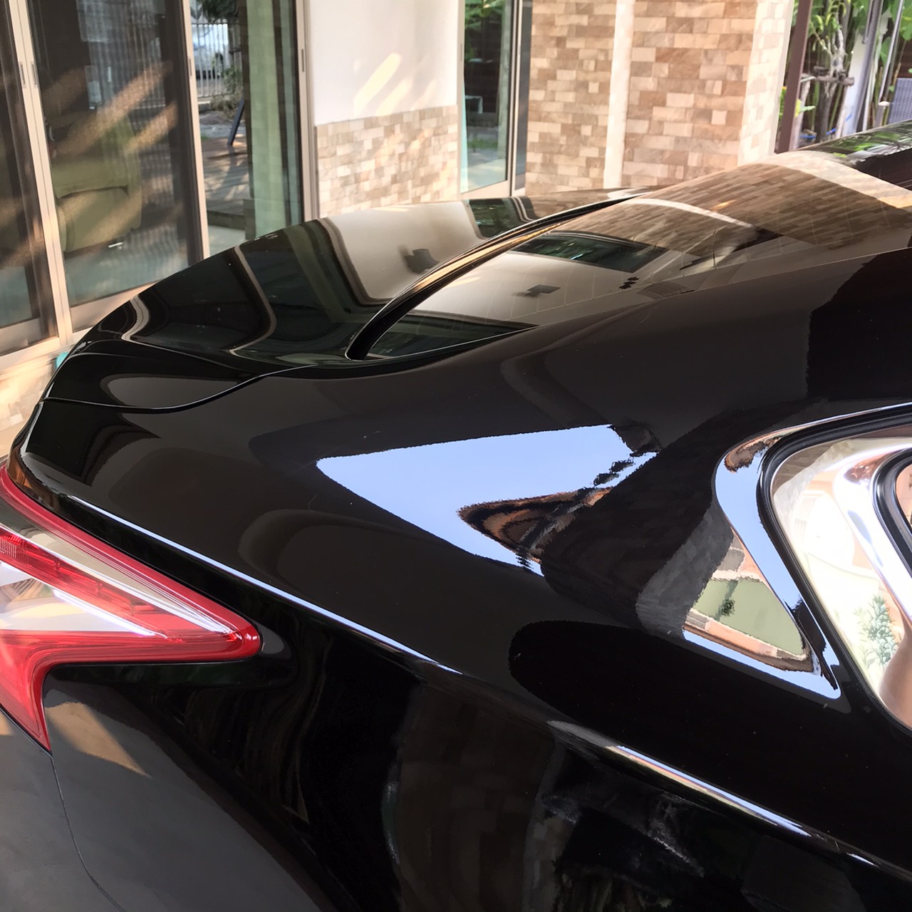 เนื่องด้วย เราใช้รถสีดำ และเป็นคนที่ไม่รักษารถเลย ( เรียกว่าขับอย่างเดียว ) เอารถไปล้าง คือล้างสีดูดฝุ่นธรรมดา ไม่เคยรู้ว่า รถสีดำต้องดูแลเป็นพิเศษ แต่แอบมีบางครั้งที่เห็นรถสีดำคันอื่นๆ เงาวับ ยังแปลกใจ เค้าคงต้องดูแลรักษาอย่างดีแน่ๆ แค่คิดแค่นั้น แต่เราเองไม่เคยทำเลย