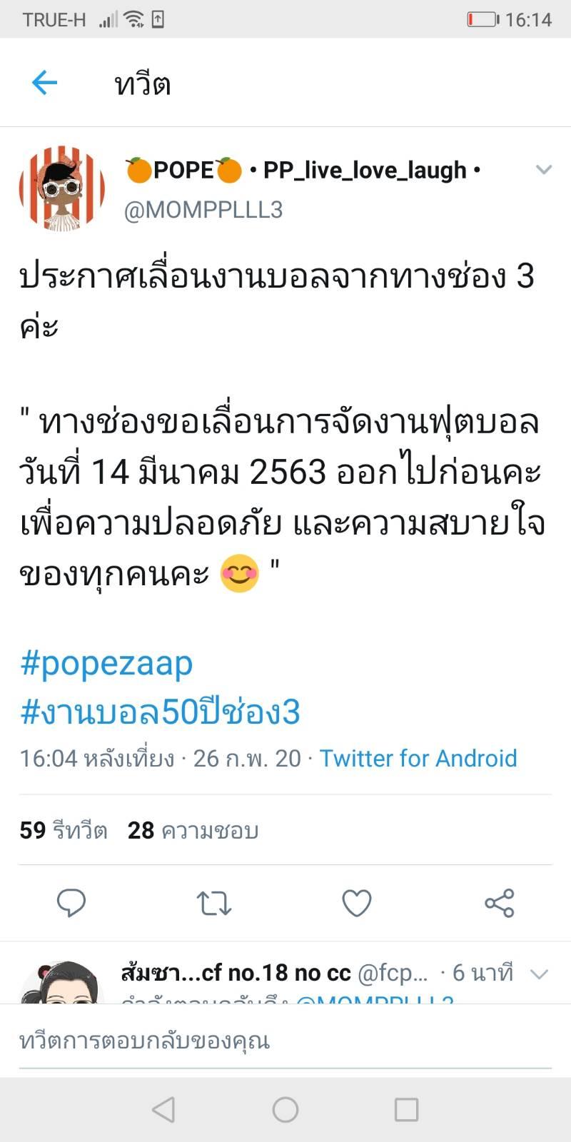 ช่อง3เตรียมเลื่อนงานบอล50ปีช่อง3อย่างไม่มีกำหนด