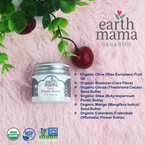 Earth mama เป็นบาล์มบริสุทธิ์ ไม่มีสารเจือปน เป็นผลิตภัณฑ์ Organic Made in USA ที่โรงพยาบาลในอเมริกาแนะนำ ซึ่งไม่มีส่วนผสมจากสัตว์ หรือน้ำมันสัตว์เลย เข้าปาก ใช้ทาบริเวณหัวนม รักษาความชุ่มชื้น เพื่อป้องกันและบรรเทาอาการหัวนมเจ็บหรือหัวนมแตก ไม่จำเป็นต้องเช็ดออกเมื่อต้องการให้นมบุตร