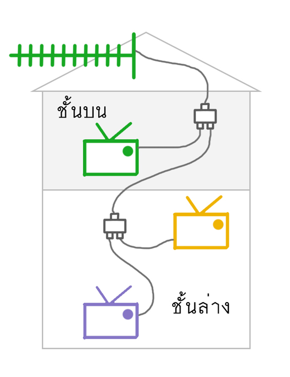 ถ้าผมจะเพิ่มทีวีชั้นล่างอีกหนึ่งเครื่อง ผมจะต่อจากสายเส้นที่เข้าเครื่องชั้นล่างเข้า power pass เข้า1ออก2 อีกตัวแล้วค่อยเข้าทีวีทั้งสองเครื่อง
