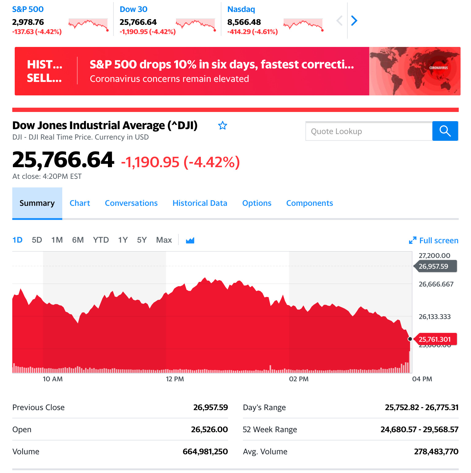 BREAKING NEWS!! ดาวโจนส์ร่วงแรงกว่า 1,000 จุด ดิ่งเหวทำสถิติ