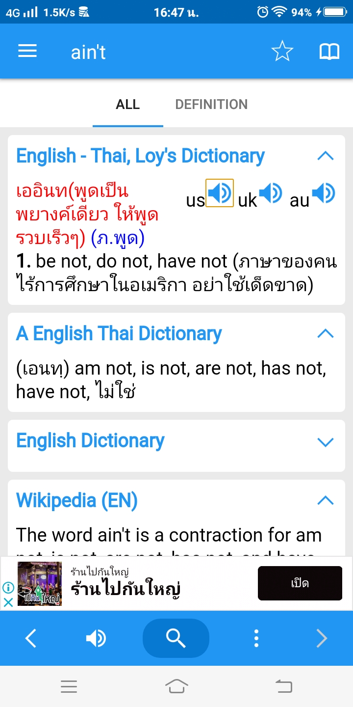 คำว่า ain't ในแอพ dict มันแย่แบบนี้เลยหรอ?