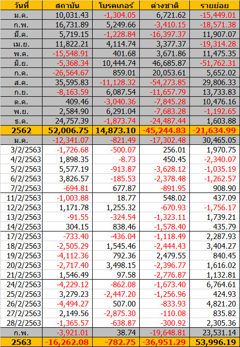 Sinthorn Summary 28/2/2563 : ต่างชาติขายสุทธิ -300.92 ืนลบ.