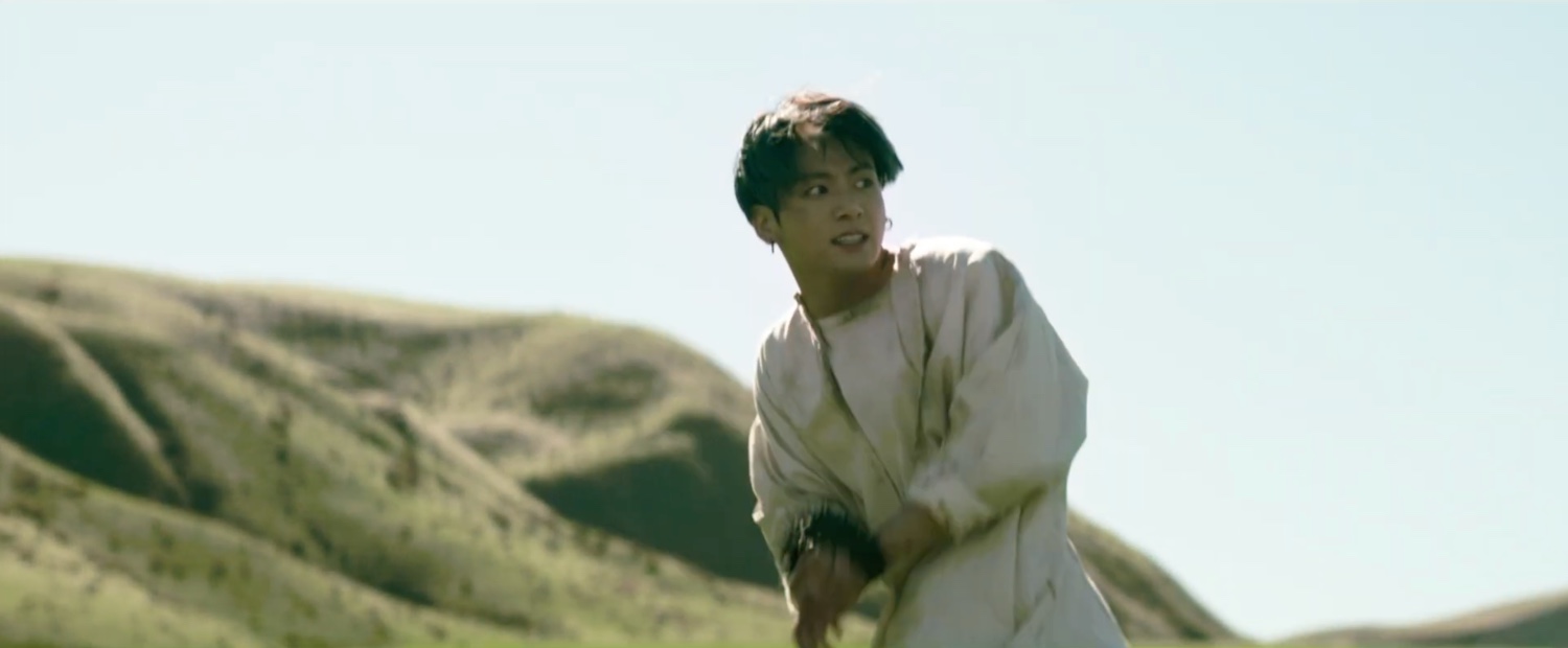 ฉากนี้เราจะเห็นว่าจองกุกกำลังหนีออกมาจากที่ไหนซักที่ พร้อมกับมือที่มีกุญแจมือหนามพันไว้อยู่