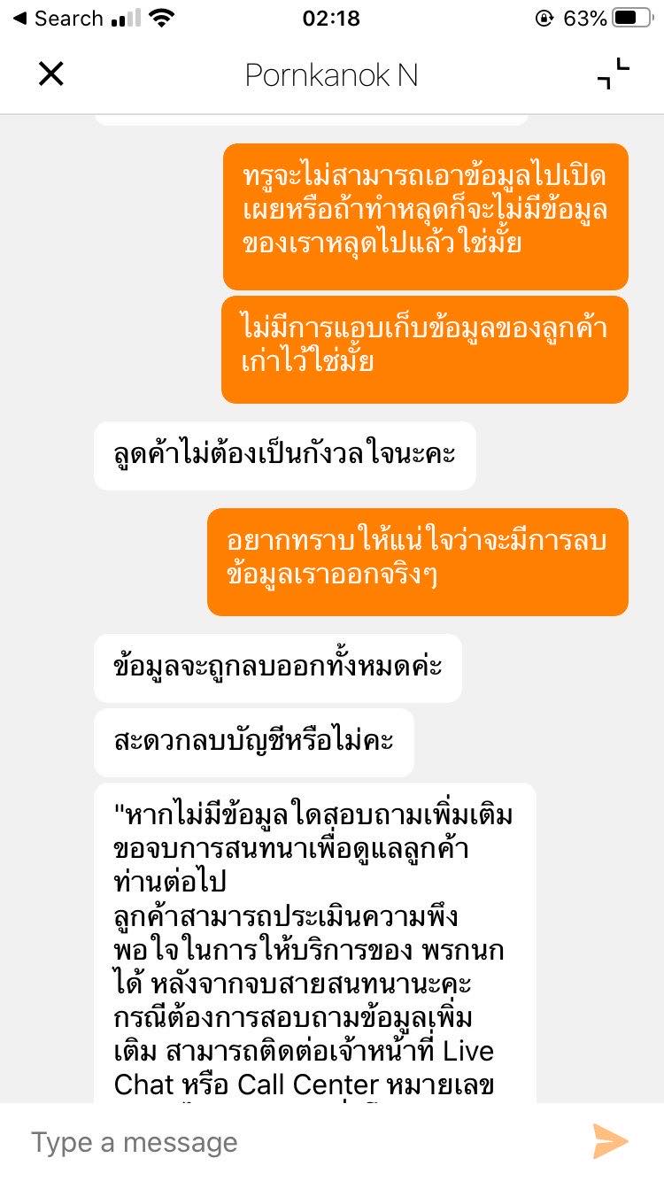 บอกก่อนเลยว่าฝั่งเราตอบเร็วสุดๆ ฝั่งนู้นตอบช้ามาก สุดท้ายตามที่เห็นเรายังพิมพ์ถามต่ออยู่เลย แต่โดนปิดแชทไปเลยซะงั้น