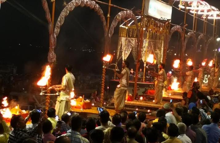 สถานที่สุดท้ายวันนี้ คือ ท่าน้ำดัสวเมธ (Dasaswamedh Ghat) ชมพิธีบูชาไฟ (Aarti Puja) ริมแม่น้ำคงคา เริ่มเวลา 18.30 - 19.30 น. ของทุกวัน คนเยอะมาก มีทั้งแบบมาเป็นกรุ๊บนั่งอยู่ในเรือในแม่น้ำคงคา และนั่งดูตรงบันไดท่าน้ำ คร่าวๆ น่าจะเกือบหมื่นคนได้