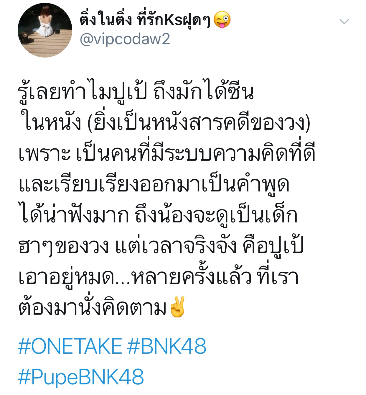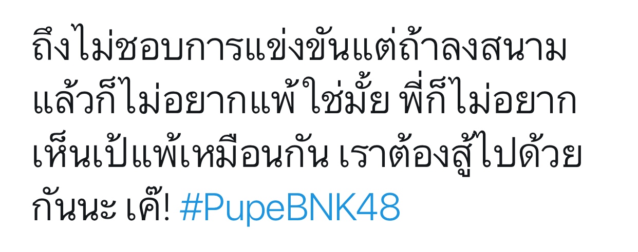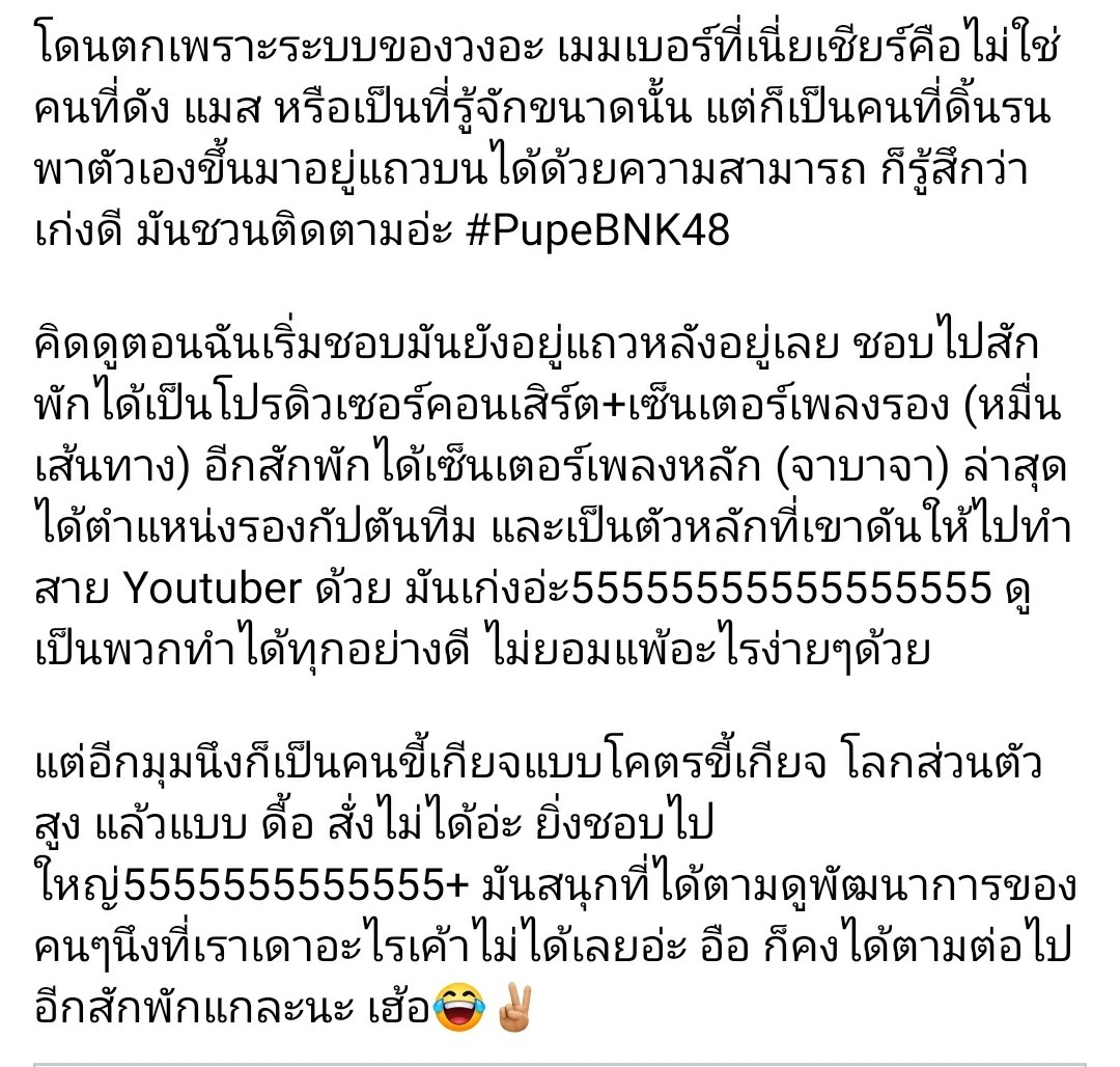 ยังอยากเห็นเป้ได้ทำสิ่งที่รักบนเวที ได้ยิ้ม ได้สดใส เปล่งประกายบนเวทีนะ ขอแรงสนับสนุนให้ยัยน้องคนนี้ด้วยนะคะ