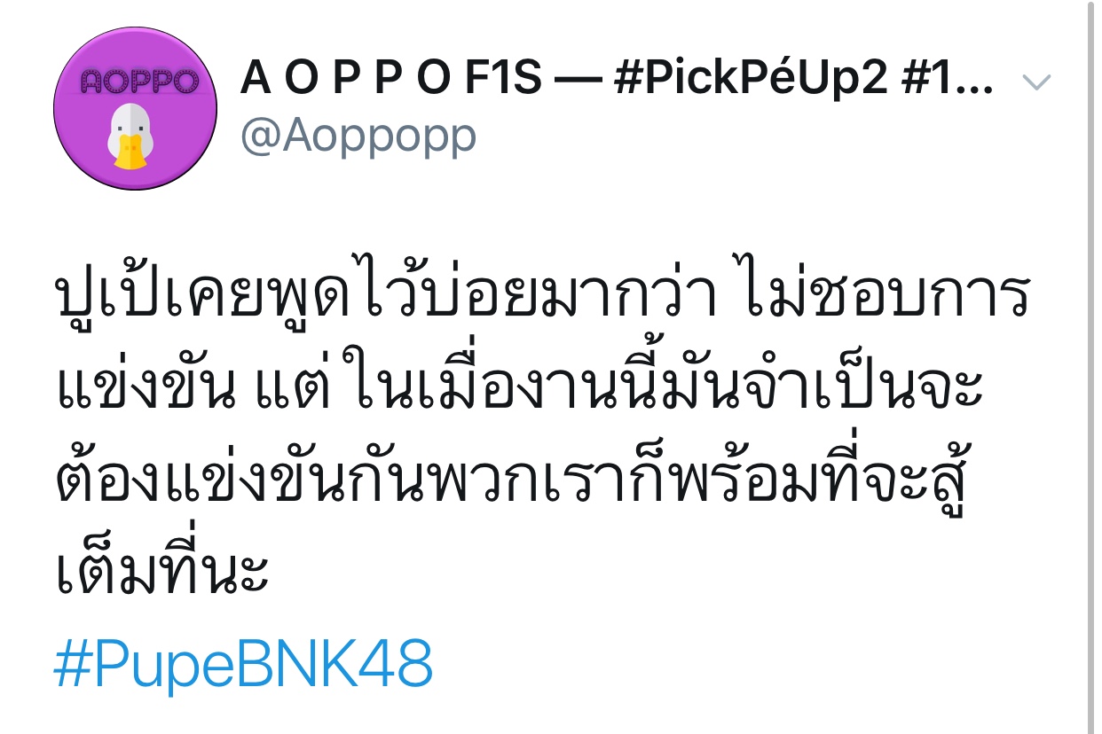 เป้พูดหลายครั้งมาก ว่าไม่ชอบการแข่งขัน ไม่ชอบถูกเปรียบเทียบ แต่เมื่อต้องลงแข่งขัน ก็ทนไม่ได้ ที่จะให้ใครแซงขึ้นไป