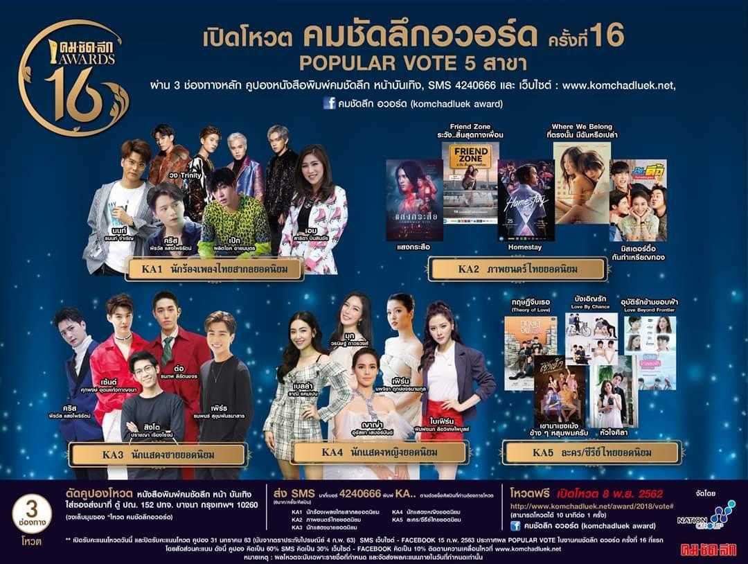 ดีจร้า....วันนี้มีข่าวเด็กน้อยหลายเรื่องเลย .... ขอเริ่มจาก.. - ทาง คมชัดลึก ได้จัด โหวต POPULAR VOTE คมชัดลึก อวอร์ด ครั้งที่ 16 โดยสาขาที่มีน้องๆเราคือ ภาพยนตร์ไทยยอดนิยม โดยมีเรื่อง HomeStay และ W