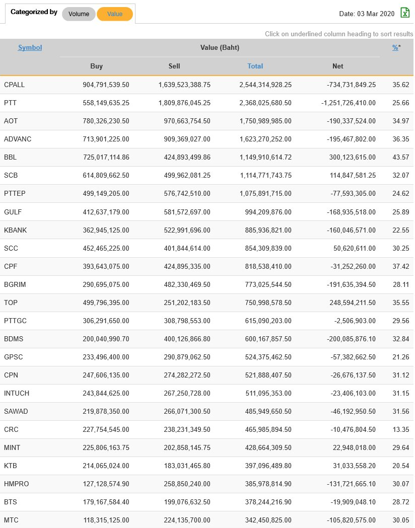 นักลงทุนต่างชาติ NVDR ซื้อ-ขาย มูลค่าสูงสุด 25 อันดับ 20/03/63
