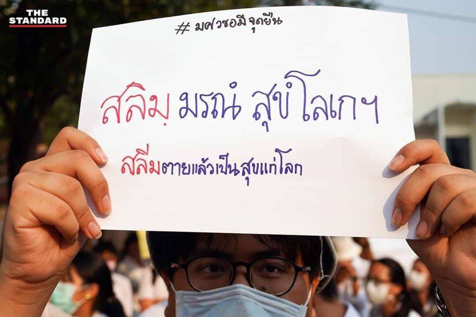คำในแผ่นกระดาษของน้องนักศึกษาเป็นคำแปล "โดยอรรถะ"