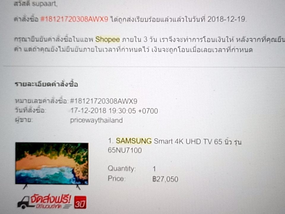 อันนี้คือ TV samsung รุ่นที่สั่งซื้อ จะเห็นว่ามีระบุประกัน 3 ปี ตัวเล็กๆ